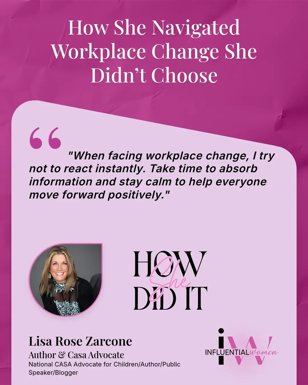 We are all creatures of habit, and when our rhythm and routines are disrupted, it can cause different types of internal chaos in our thoughts and emotions. This transition brings us from feeling grounded and centered to completely off balance by the switching of gears. We cannot predict when change can happen and it is not always optional. What do you do when you are faced with these types of crossroads? I know for myself when faced with challenges and changes in the workplace, I try hard not to instantly react. It is important to take time to absorb what has been present to you, and then let it settle in. The best course of action is to gather as much information as you can and prepare yourself for what is to come. When someone reacts in a negative manor, it can cause a ripple effect throughout the workplace, and that never turns out to be a good thing. When emotions start to ride high, it can be hard not to jump on the bandwagon of negativity because it becomes so loud and heavy. Trying to remain calm and clear headed will help everyone move forward in a positive direction. Even when it might not feel good in the moment, change is actually a positive thing because it keeps us focused and thinking outside the box. At the end of the day not all changes are good one, but it is how you personally approach it that makes all the difference. QUOTE: Lisa Zarcone